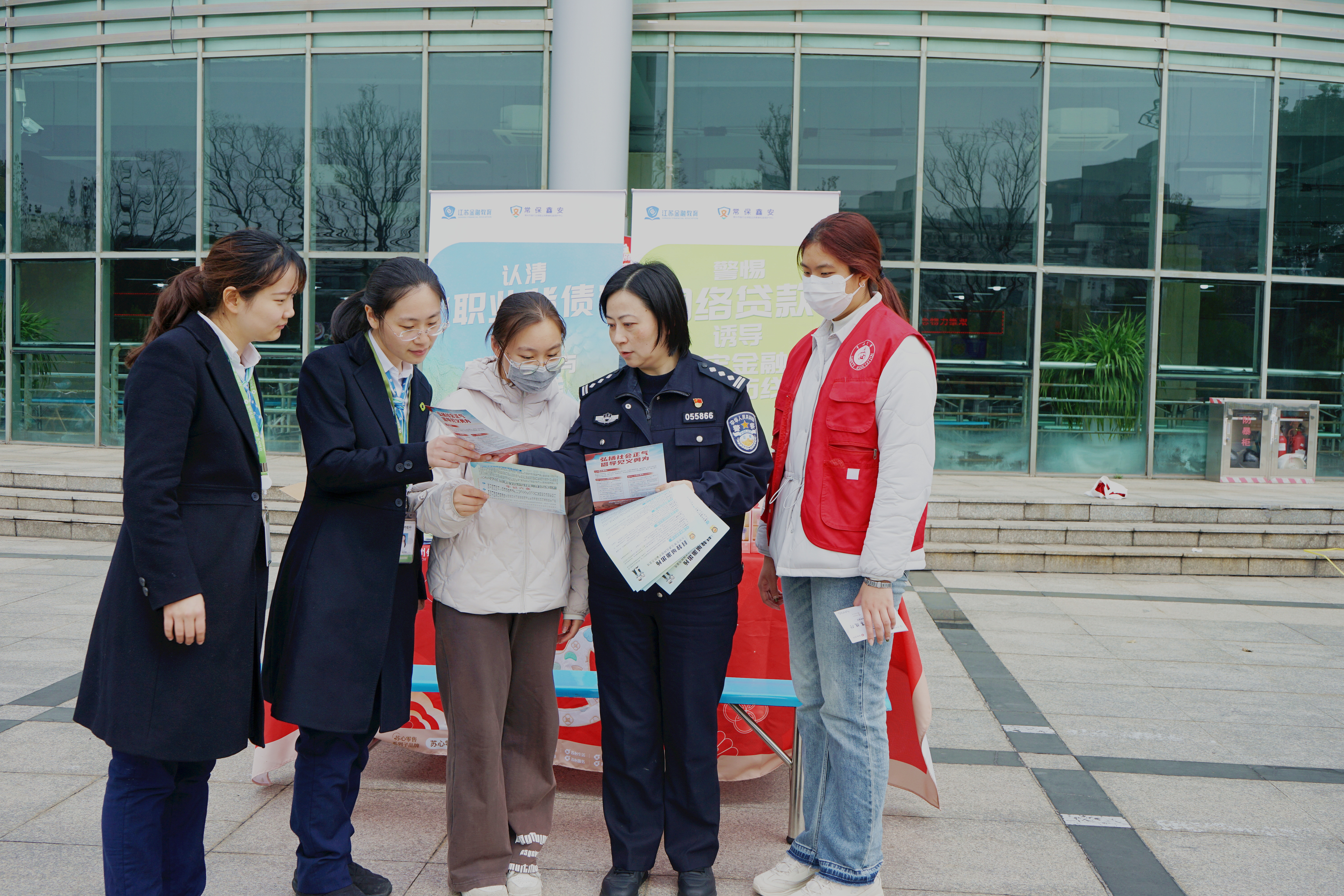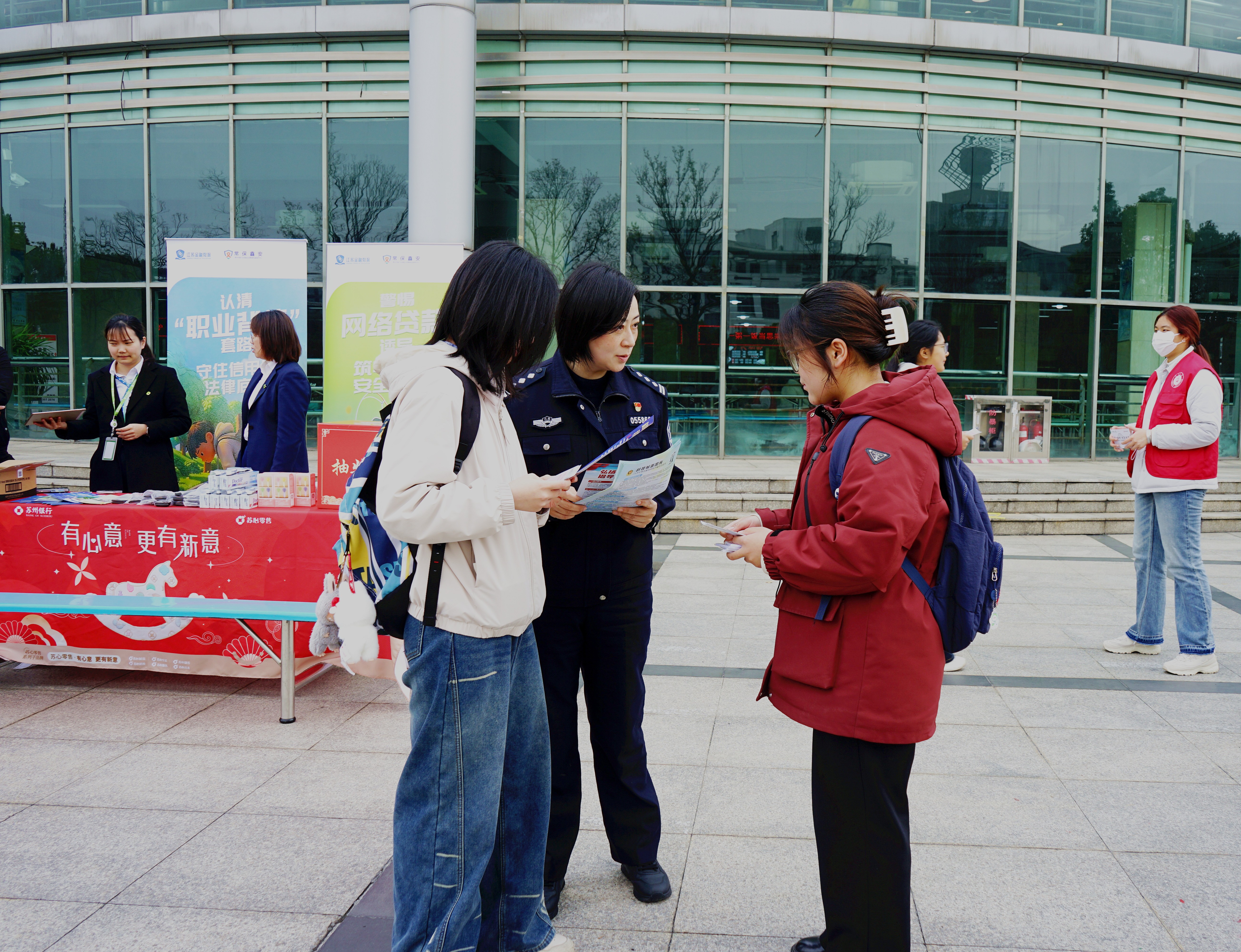 为守护校园安全,提升师生防骗能力,3月25日,安全保卫处联合科教城派出所、苏州银行常州分行在水月广场开展 “反诈进校园 守护钱袋子”主题宣传教育活动。