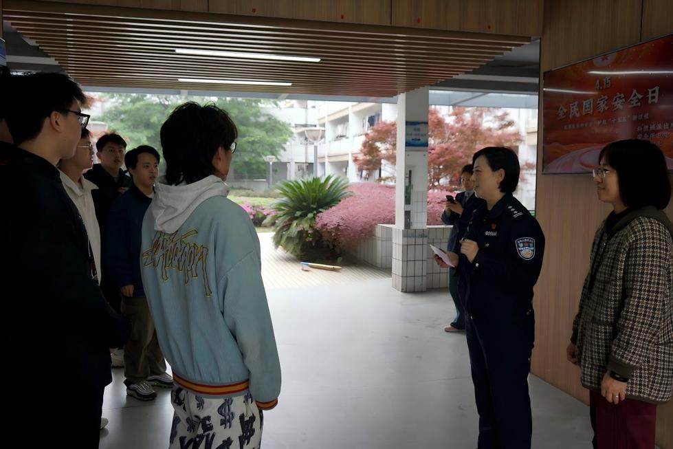 活动采用面对面的小型知识问答的形式。驻校民警吴警官结合大学生的认知特点和生活实际,围绕“国家安全涵盖哪些领域”、“日常生活中哪些行为可能危及国家安全”、“大学生应如何履行维护国家安全的责任”等核心问题,与同学们展开了热烈互动。