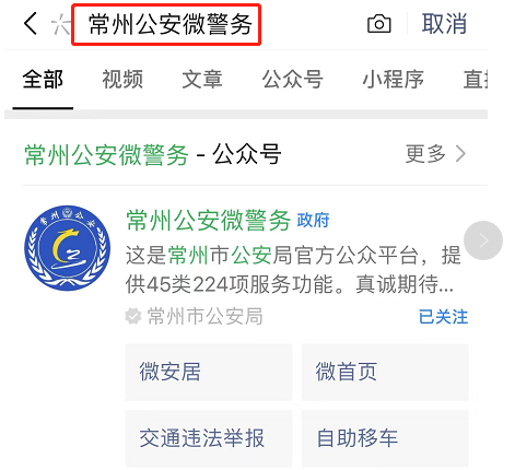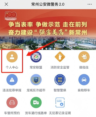 微信搜索“常州公安微警务”并关注,进入公众号后点击左下角“微首页”,进入“个人中心”完成实名认证(需绑定身份证信息)。